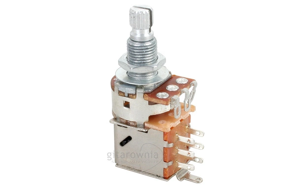 B500K - PP18 liniowy potencjometr push pull, stosowany przy układach barwy tonu w gitarach z humbuckerami (przystawkami dwucewkowymi).