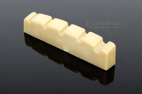 - Siodełko do 5-cio strunowej gitary basowej. Wykonane z Tusq (kość syntetyczna). Dłogość - 46,5 mm. Szerokość - 6,5 mm. Wysokość - 8,5 na 10 mm. Rozstaw strun - 37,5 mm.