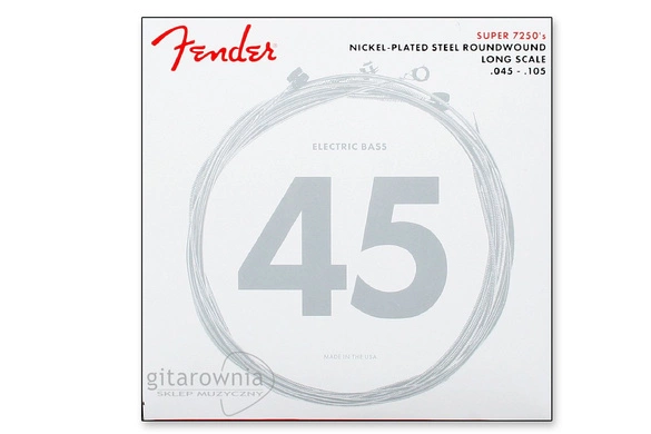 - Fender 7250M to bardzo dobrej jakości, warte polecenia struny. Rozmiar 45"-105"...