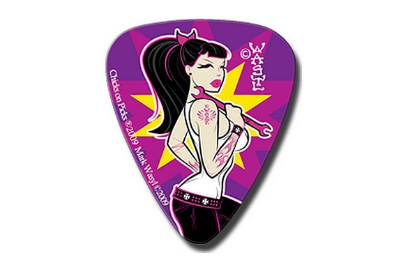 - Kostki gitarowe z serii Drop Dead Sexy to owoc współpracy firmy Grover Allman i grafika Marka Wasyla. Prezentują się nie mniej świetnie jak te z serii Chick On Pick i zostały bogato obdarowane talentem Marka.