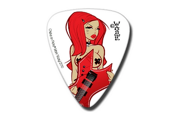 • Kostki gitarowe z serii Drop Dead Sexy to owoc współpracy firmy Grover Allman i grafika Marka Wasyla. Prezentują się nie mniej świetnie jak te z serii Chick On Pick i zostały bogato obdarowane talentem Marka.