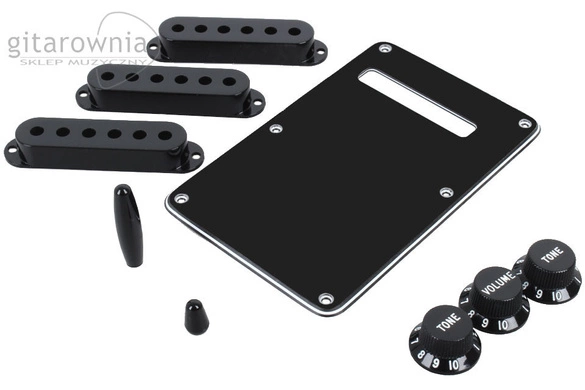 Fender 0991363000 accessory kit- oryginalny zestaw plastików do gitary Fender Stratocaster. Wyprodukowany w U.S.A.Kolor - czarny