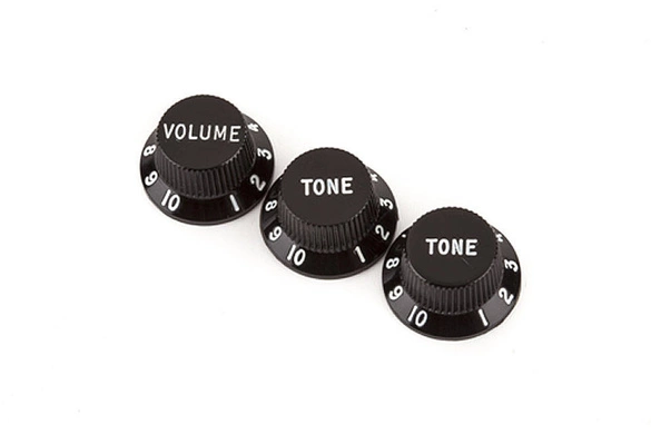 Zestaw oryginalnych gałek na potencjometr legendarnej marki Fender®. (3szt. w zestawie 2 tone, 1 volume), kolor czarny.