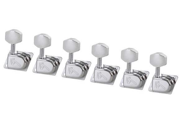 - Zestaw oryginalnych kluczy gitarowych jednostronnych marki Fender®. Model - 70s. Charakterystyczne F na puszkach. Średnica trzpienia - 6 ,1 mm. Wysokość trzpienia 6 + 19 mm. Rozstaw otworów na śrubki montażowe - 21 mm.