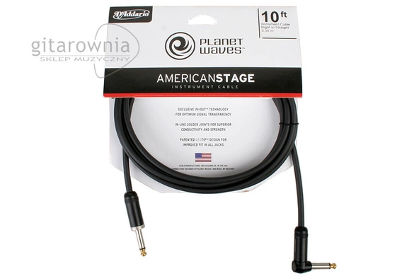 Planet Waves przedstawia nowe kable z serii American Stage - nowa seria produkowana jest w całości w USA - PW-AMSGRA-10 - przewód dł. 3m jackprosty - jack kątowy