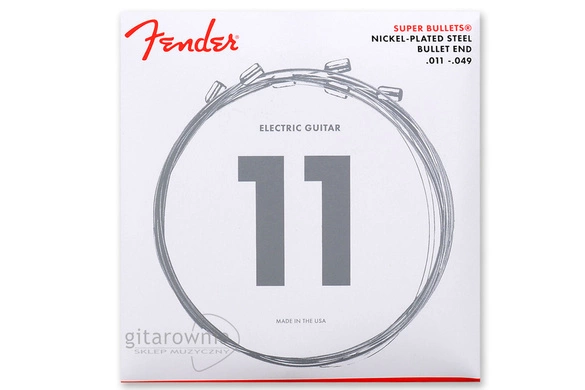 Struny 3250M z przeznaczeniem do gitary elektrycznej. Produkt znanej i cenionej na całym świecie marki Fender, zajmującej się produkcją gitar oraz akcesoriów gitarowych w tym strun. 3250M to struny o grubości 11 - 49 wykonane ze stali niklowanej. Struny idealne do rock'a oraz innych gatunków. Opatentowana przez Fender'a technologia bullet-end sprawia, że struny są idealnie dopasowane do mostka tremolo. Struny firmy Fender'a są często wybierane ze względu na soją długą żywotność.