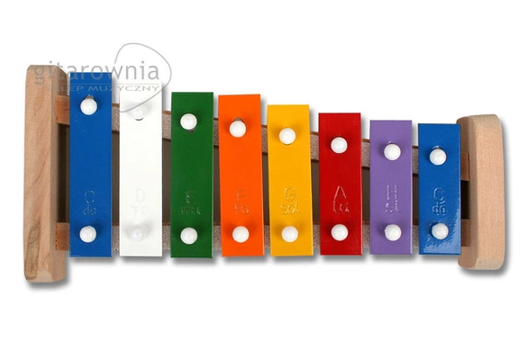 Dzwonki 8 tonowe polskiej produkcji. Zbudowane są z drewnianej podstawy, do której przymocowano 8 metalowych sztabek o różnej wielkości i o różnej wysokości dźwięku każda. Drewniany korpus zapewnia dobre mocowanie sztabek oraz przyjemny dla ucha dźwięk instrumentu. Dźwięki sztabek ułożone zostały diatonicznie w skali od dźwięku c3 do c4. Każda ze sztabek posiada wygrawerowaną nazwę dźwięku co z pewnością ułatwi grę każdemu małemu muzykowi. W komplecie z dzwonkami dołączono dwie pałeczki.