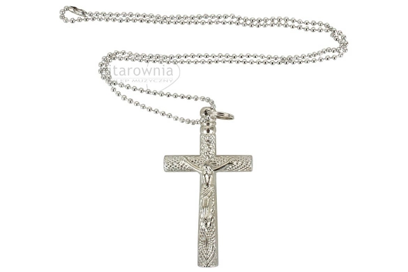 Klucz do strojenia perkusji. Klucz jest w kształcie krucyfiksu, posiada solidny, długi łańcuszek, co czyni go także wisiorem. Można go z powodzeniem nosić jako ozdobę. Długość łańcuszka - 34 cm. Wymiary kluczyka (krucyfiks) - 7.5 x 4.5 cm.