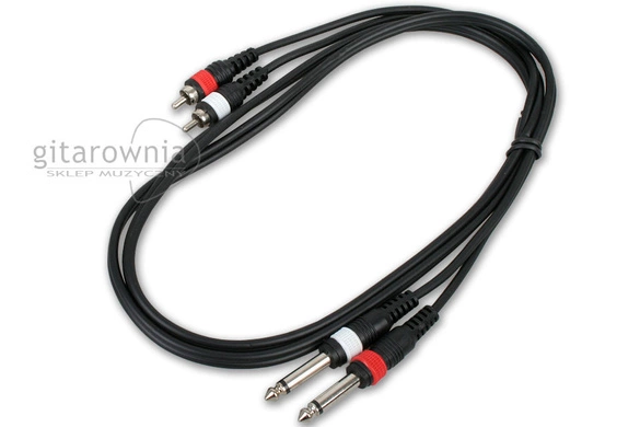 Rockcable RCL20932D4. Z Jednej strony zakończony dwoma dużymi jackami mono, a z drugiej dwoma cinczami (RCA). Tego typu kabel jest najczęściej używany do podłączania odtwarzaczy audio/CD/MiniDisc do wybranych kanałów miksera. Kabel ma długość 1.5 m.