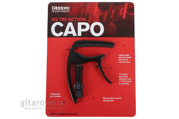 Uniwersalny kapodaster Planet WavesD'addario PWCP09, do gitary akustycznej oraz elektrycznej. Gumowe zakończenia zabezpieczają przed zarysowaniami gryfu. Opatentowana geometria Tri - Action Capo oferuje łatwe użycie. Model CP09 został wyposażony w mini pickholder. Oczywiście urządzenie sprzedawane jest w firmowym pudełku. Trwałość i wygoda użytkowania to główne atuty tego modelu.