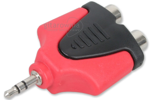 Redukcja (adapter, przelotka) firmy Roxtone. Jack 3.5 mm stereo wtyk - 2 x gniazdo RCA (cinch).