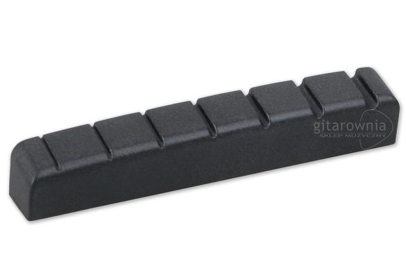 - Siodełko gitarowe, 7-strunowe, firmy Graph Tech, ze specjalnej mieszanki tworzyw sztucznych z domieszką grafitu zwanej Black Tusq, zapewniające lepszy poślizg strun...