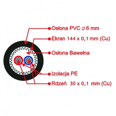 Ekran pleciony, przewód bardzo elastyczny i odporny na warunki zewnętrzne.