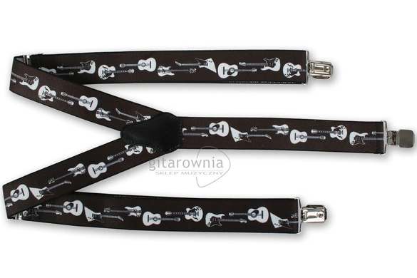 Oryginalne szelki z motywem muzycznym - gitary (białe na czarnym tle). Świetne na prezent dla muzyka i nie tylko.