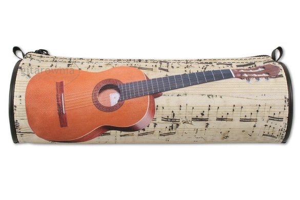 Oryginalny piórnik w kształcie tuby. Motyw muzyczny - gitara klasyczna.