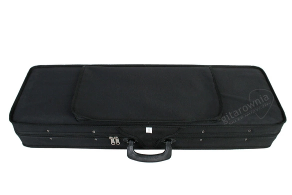 Futerał na skrzypce w rozmiarze 4/4. Solidna konstrukcja, która ochroni twój instrument przed uszkodzeniami lub niekorzystnymi warunkami atmosferycznymi. Futerał posiada regulowanej długości szelki, co znacznie ułatwia przenoszenie skrzypiec, gdy potrzebujemy wolnych obu rak. Wnętrze wyłożono welurem. Futerał posiada jedną kieszeń zewnętrzną na nuty, książkę lub akcesoria. Wewnątrz znajduje się skrytka na drobne akcesoria oraz dwa uchwyty na smyczek. Zamek ekspresowy jest dodatkowo zabezpieczony zapinaną na rzep klapką. Do case'a dołączono kawałek delikatnego materiału, który dodatkowo ochroni twój instrument.
