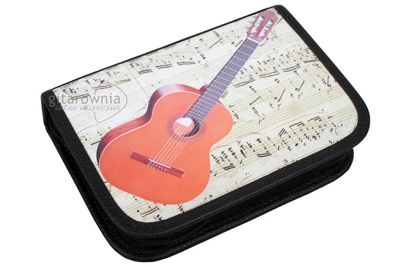- Elegancki, sztywny piórnik z motywem muzycznym - gitary klasycznej.