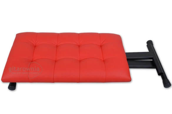 Stylowa ława pikowana do pianina, keyboardu. Stelaż ławy został wykonany z metalu starannie pokrytego lakierem w kolorze czarnym. Siedzisko ławy wypełnione wewnątrz grubą warstwą miękkiej gąbki i obszytej materiałem skóropodobnym. Po złożeniu ławę można zablokować zapinanym na rzep paseczkiem.