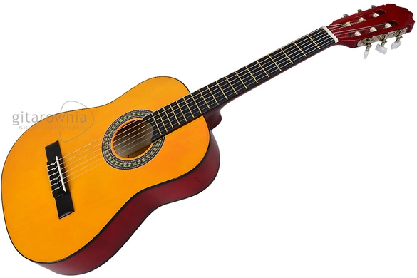 - Gitara klasyczna 1/2 - niepełnowymiarowa. Menzura 550 mm. Świerkowa płyta wierzchnia. gryf z Nato. Klonowa podstrunnica i mostek. Boczki i tył z lipy. Rozeta ozdobna. Mosiężne progi.