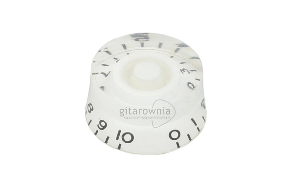 Biała, plastikowa główka z czarną skalą 0-10. Wymiary 26 x 13 mm. Pasuje na standardowe potencjometry z trzpieniem o średnicy 6 mm.